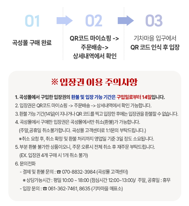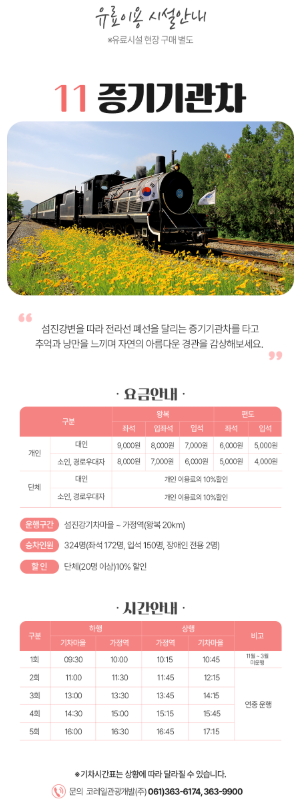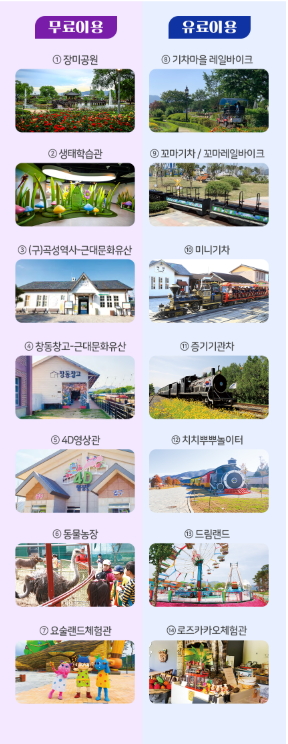 - 입장료: 성인 5,000원 / 어린이·경로 4,500원 / 곡성군민, 국가유공자, 장애인 무료