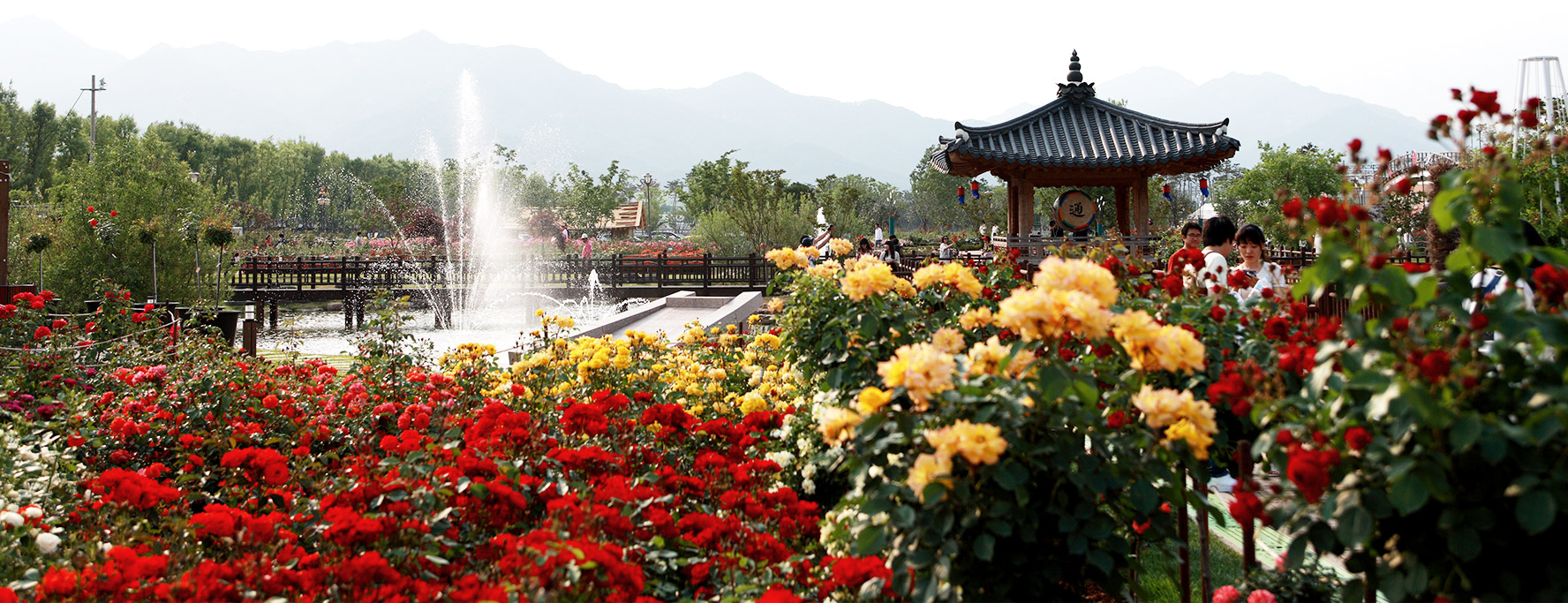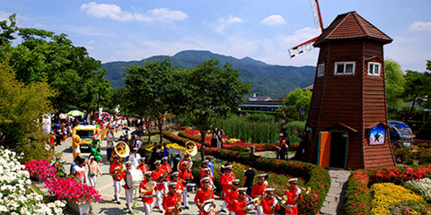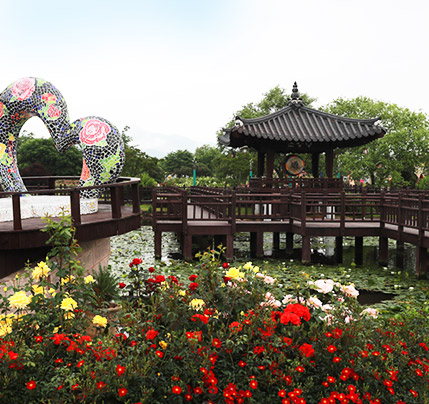 75,000㎡ 장미정원에 펼쳐진 1,004종의 명품 장미. 유럽, 아시아, 미주 등 전 세계 희귀 품종이 장관을 이룹니다. 특히 5월 중순부터 하순까지는 만개한 장미들이 절정을 이루며 환상적인 풍경을 자아냅니다.