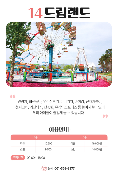 - 운영시간: 오전 9시 ~ 밤 10시 (매표는 오전 8시 ~ 오후 8시)
